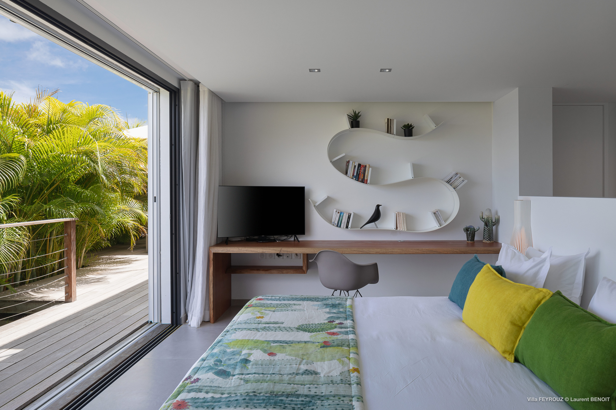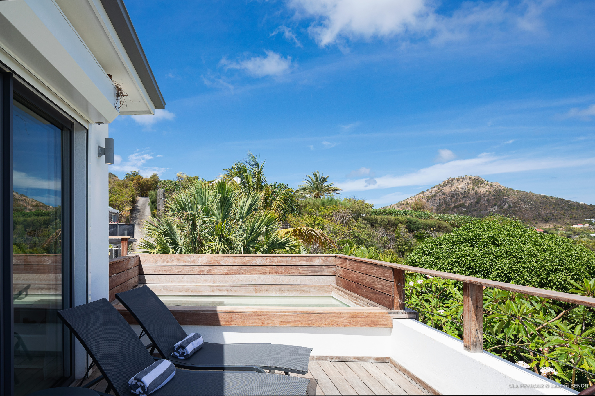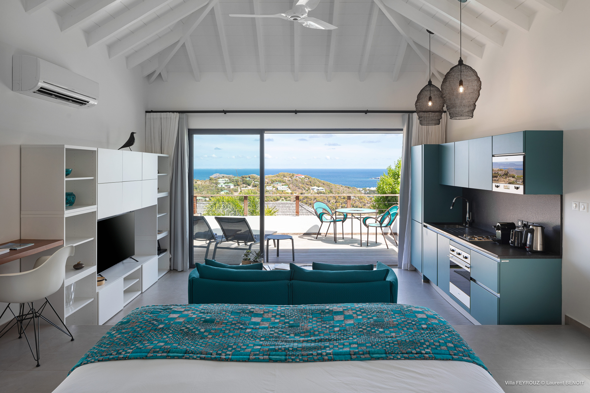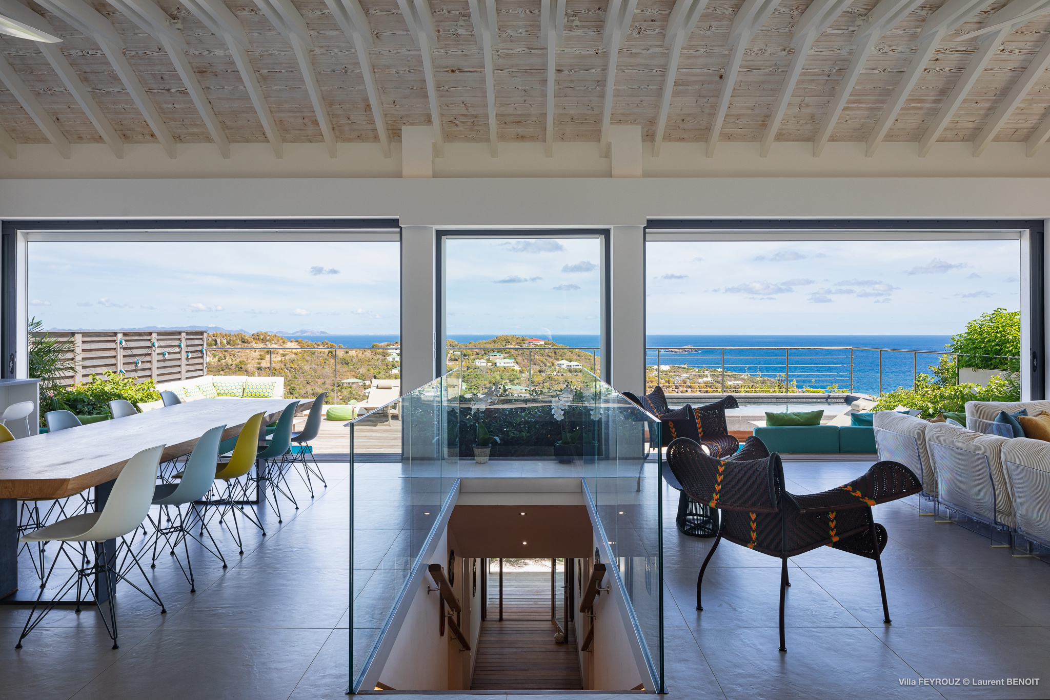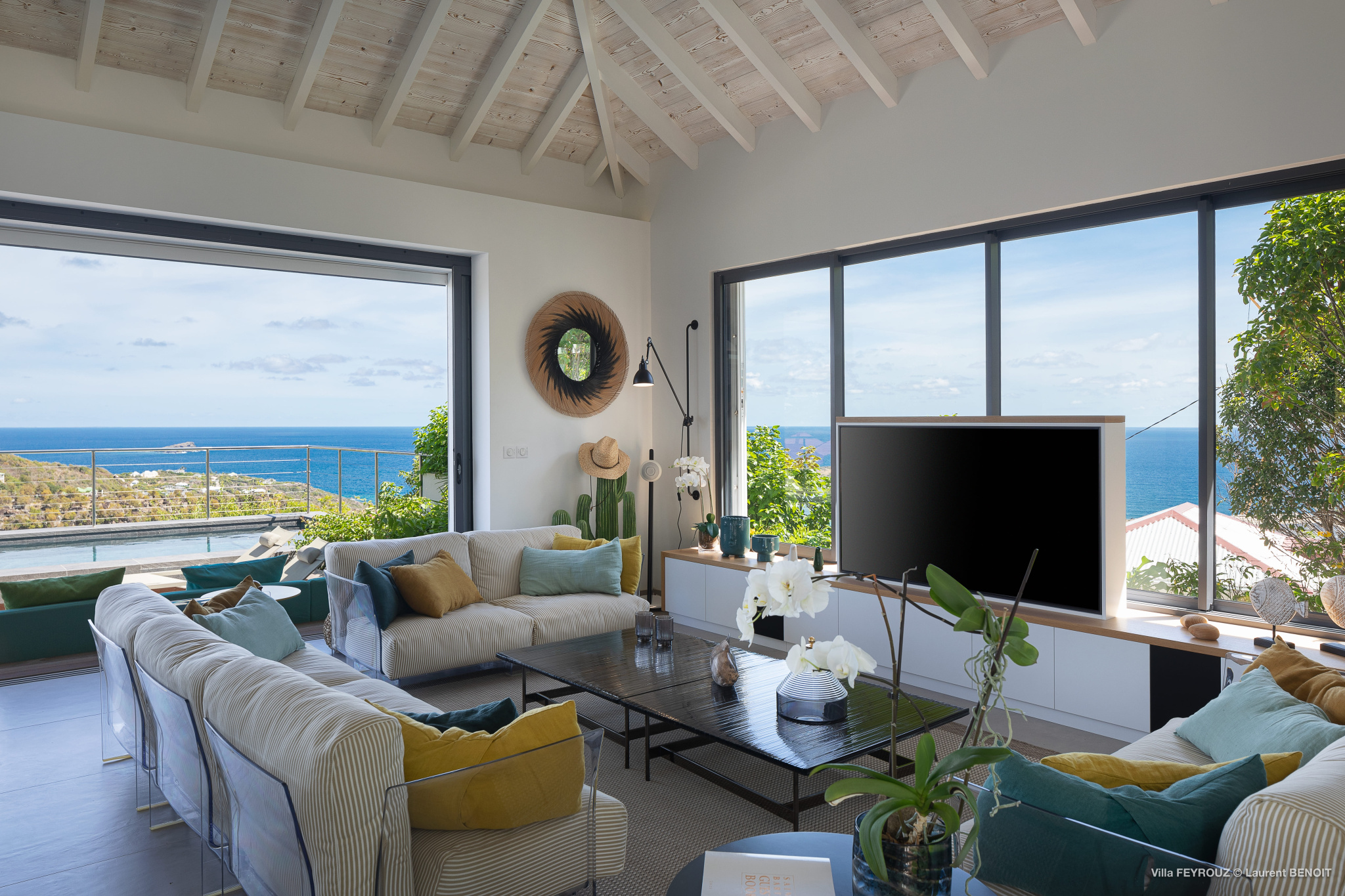 The new Villa Feyrouz (FEY) boasts a bright and open layout, bathed in natural light and fresh air. Its modern and cheerful décor, with vibrant colors, offers breathtaking views from the Grand Cul-de-Sac.