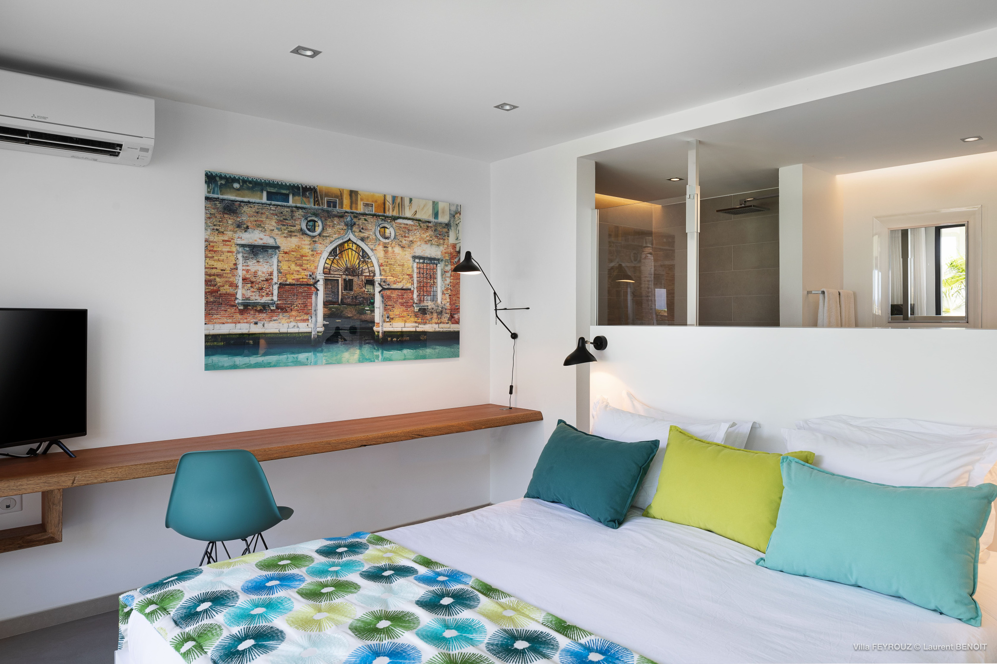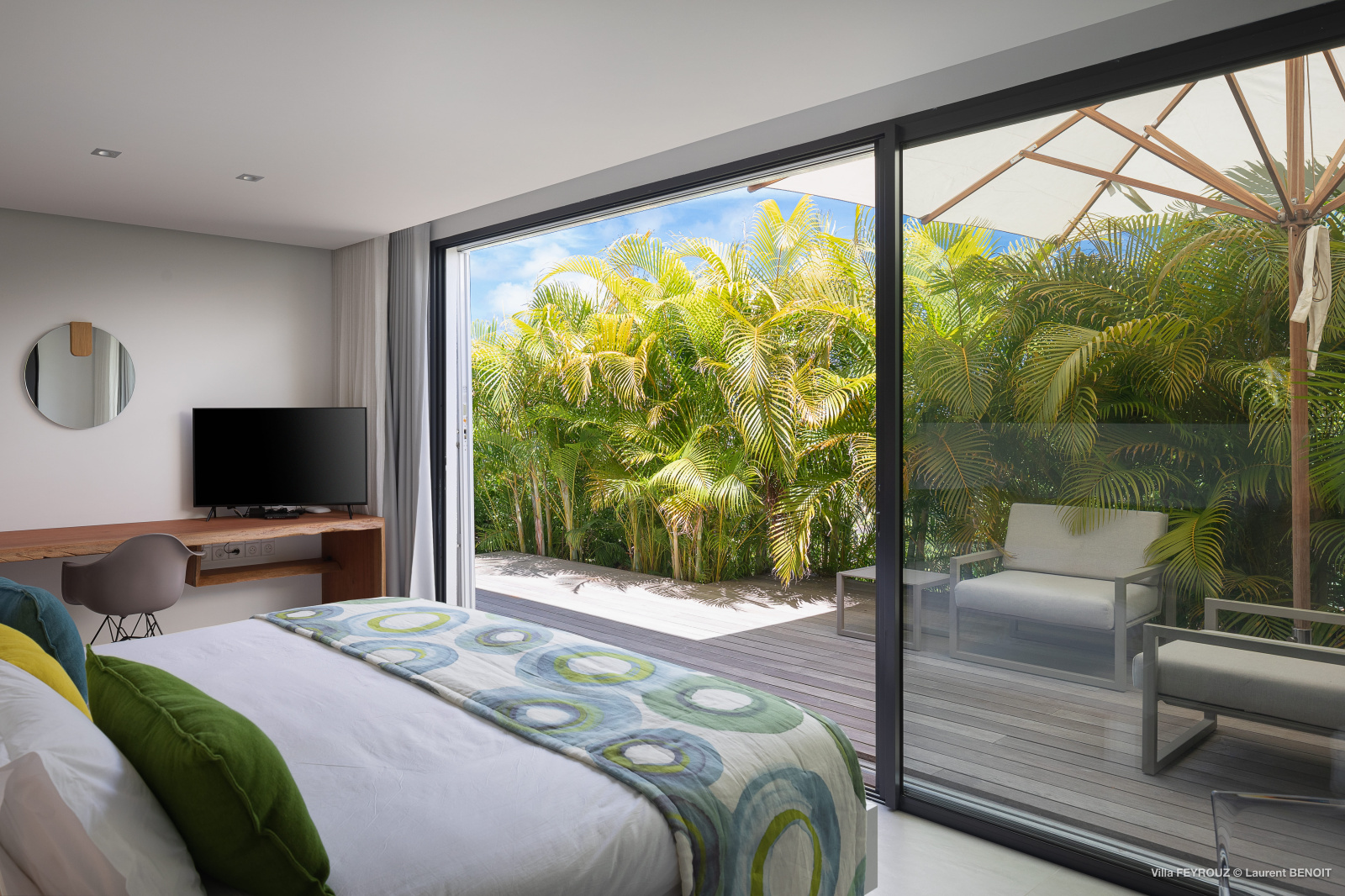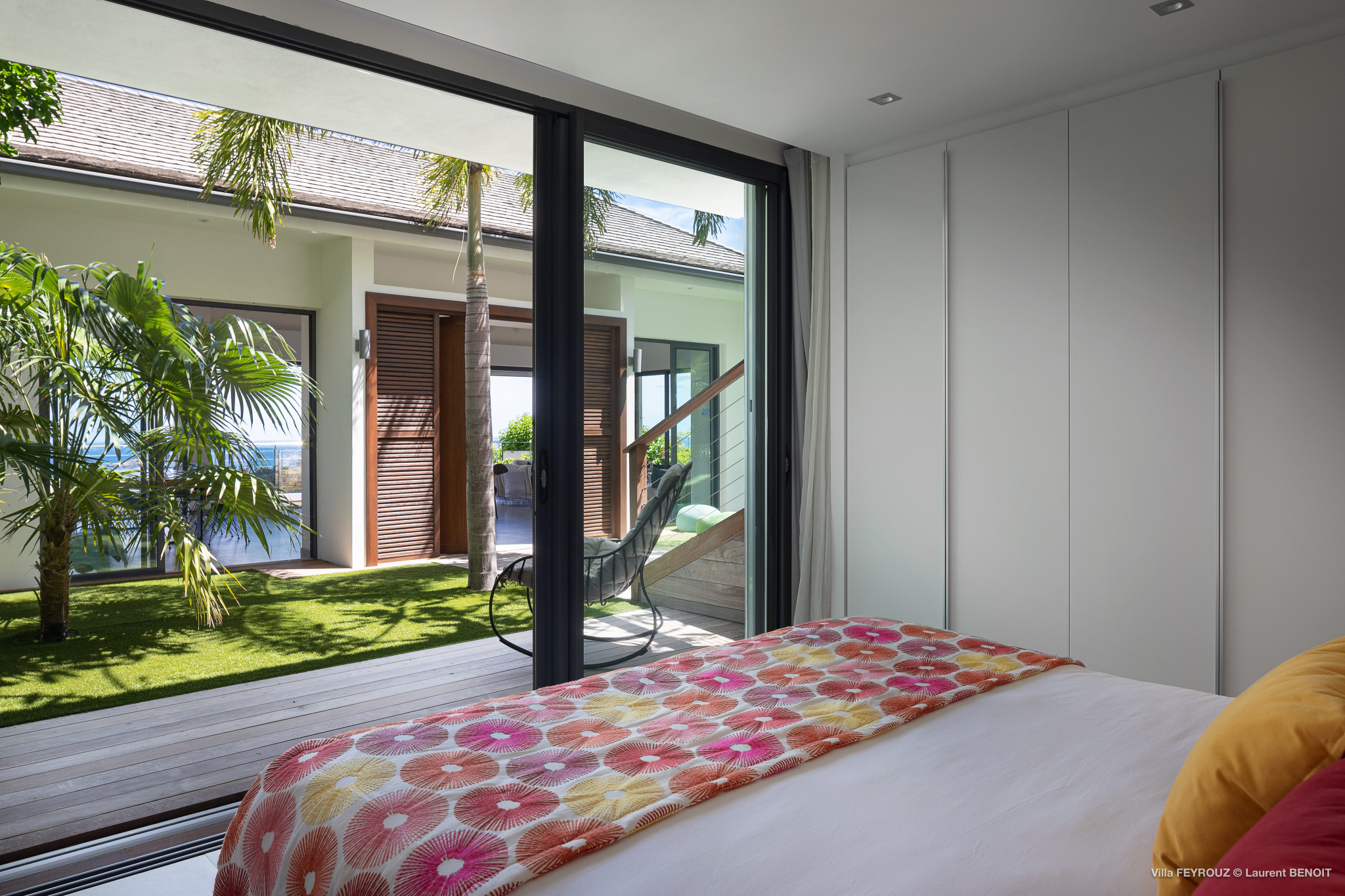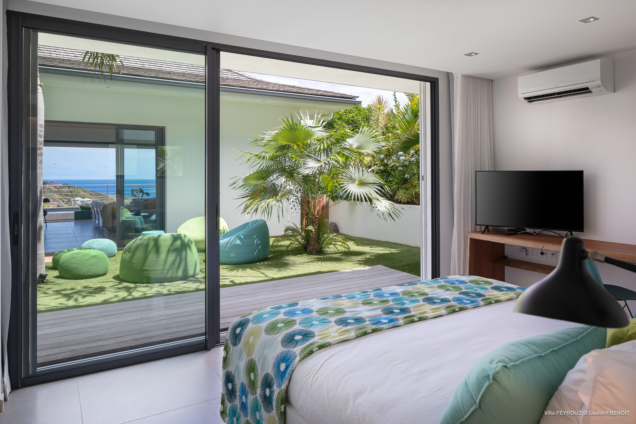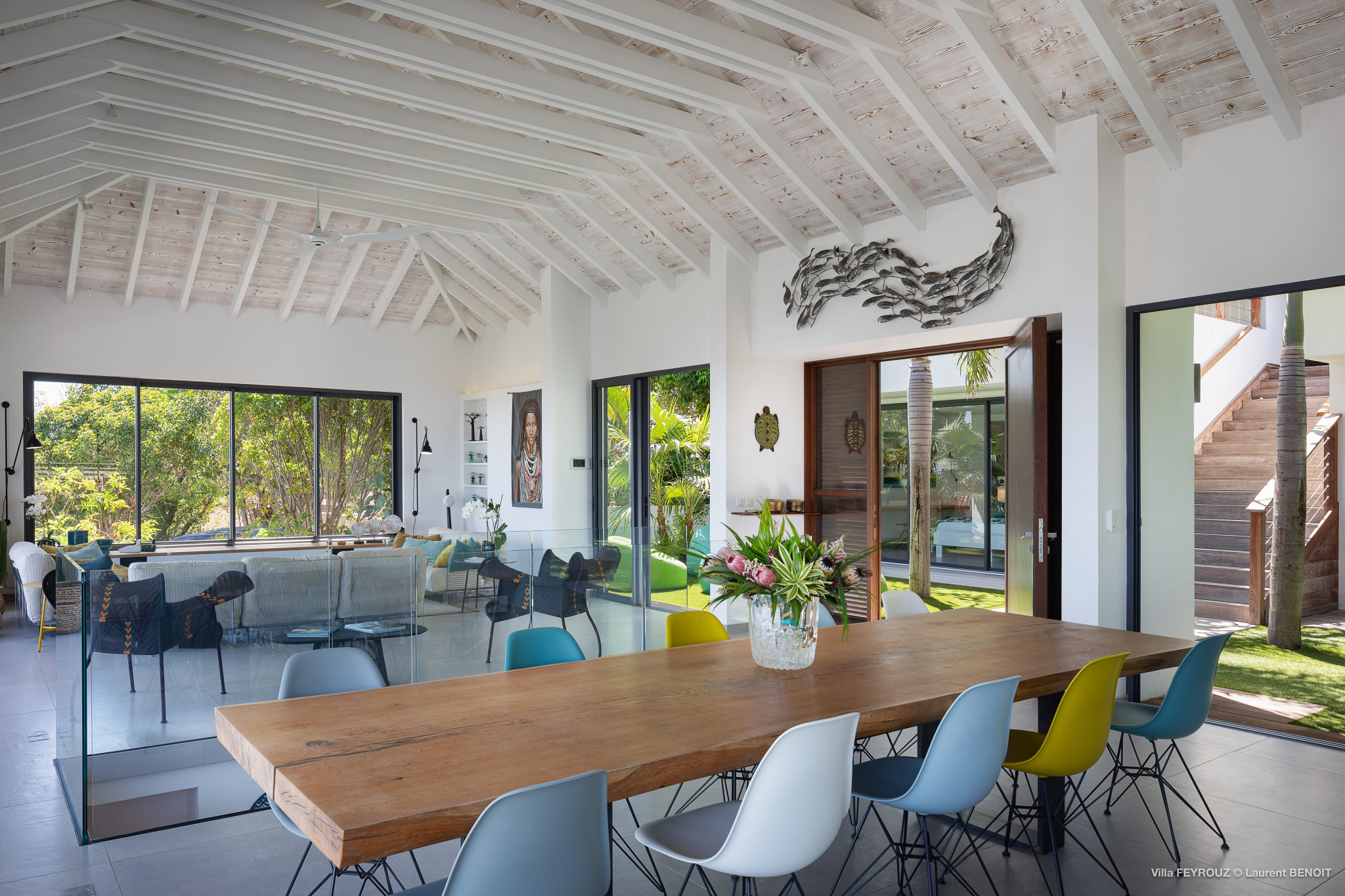 The new Villa Feyrouz (FEY) boasts a bright and open layout, bathed in natural light and fresh air. Its modern and cheerful décor, with vibrant colors, offers breathtaking views from the Grand Cul-de-Sac.